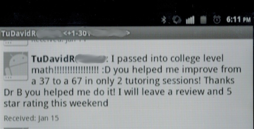 recommended!" "I cannot say thank you enough to Dr. B." Sample Testimonials from Parents of students tutored (Praise from Parents: See here) Change Frustration..
